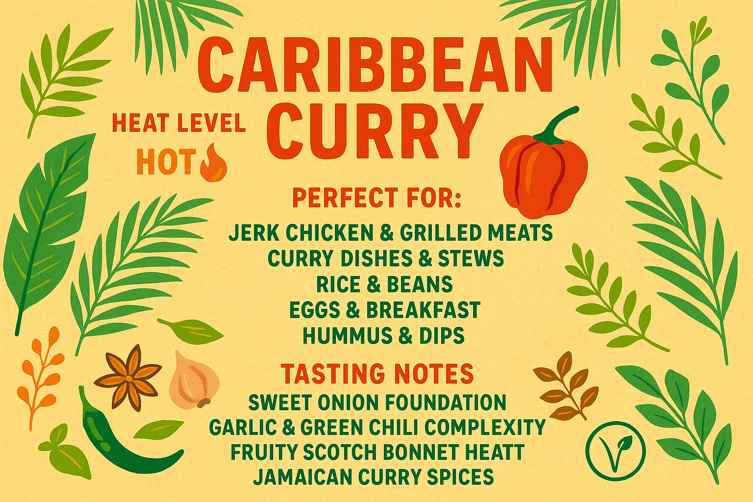 This versatile sauce is perfect for marinating chicken, adding depth to seafood dishes, or giving your rice and beans a Caribbean twist. The complex curry spices create layers of flavor that build with each bite, while the heat adds excitement without overwhelming the exotic taste profile.
