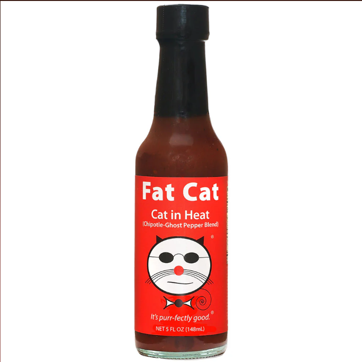 Turn up the heat with FAT CAT's Cat In Heat hot sauce! This bold and fiery sauce brings serious heat with a flavor profile that will leave you craving more. Crafted with premium peppers and spices, this sauce delivers an intense kick that hot sauce enthusiasts will love.