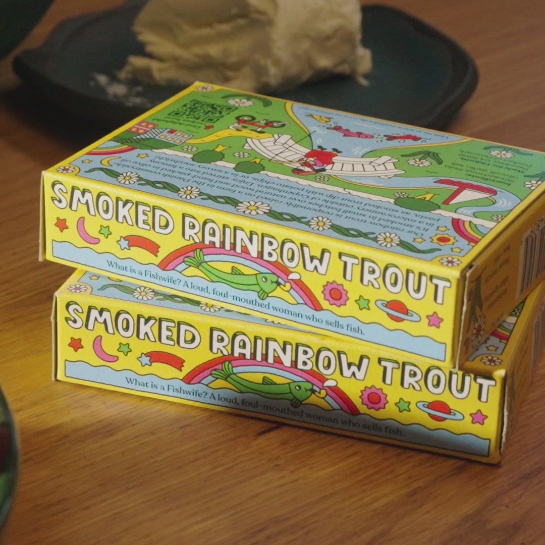 The vibrant, retro-inspired tin is the perfect pop of color for your kitchen counter and the ultimate centerpiece for your next Seacuterie board. Fishwife's smoked rainbow trout is sustainably farmed in Idaho's pristine freshwater springs, then slow-smoked over alder wood and hand-packed in premium Spanish extra virgin olive oil. This is quiet luxury in a tin—simple, beautiful, and utterly delicious.